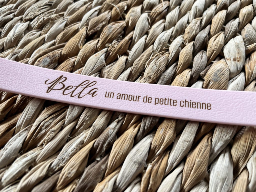 Chaque gravure est réalisée avec soin pour résister au temps, à l’usure et aux aventures du quotidien. Nom de l’animal, numéro de téléphone, message symbolique ou détail esthétique : la personnalisation apporte à la fois élégance, praticité et sécurité.