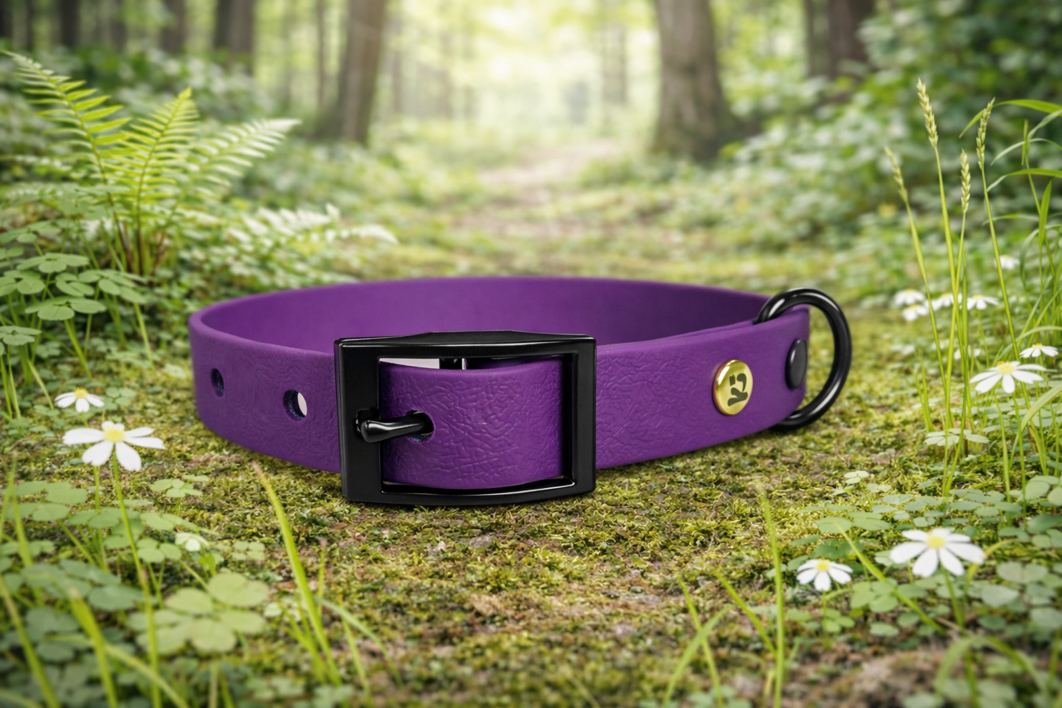 Collier pour chien fait à la main en sangle PVC de 20mm, imperméable et ultra résistante. Réglable avec sa boucle en alliage de zinc, robuste et facile à manipuler. Durable, pratique et facile à nettoyer.