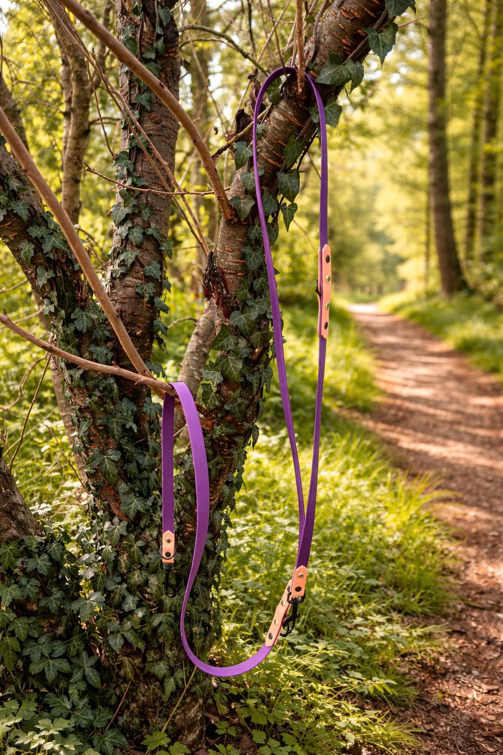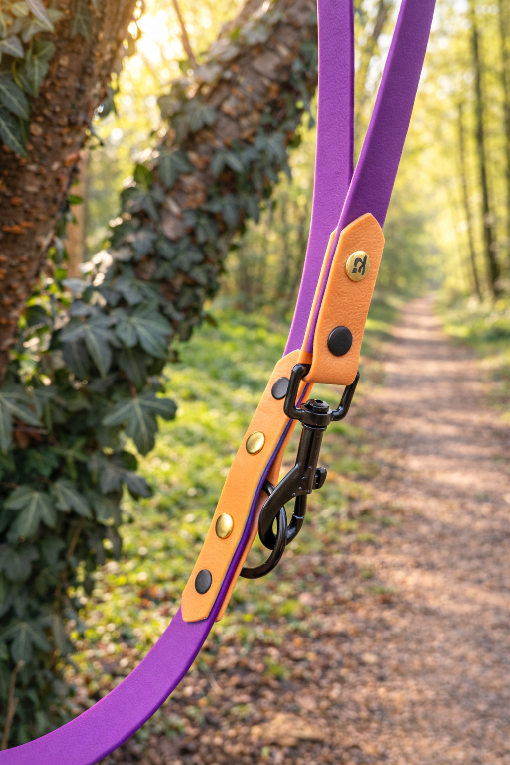 Une laisse à 3 points d’attache de 2,5 m de longueur, polyvalente, modulable et conçue pour s’adapter à plusieurs usages.